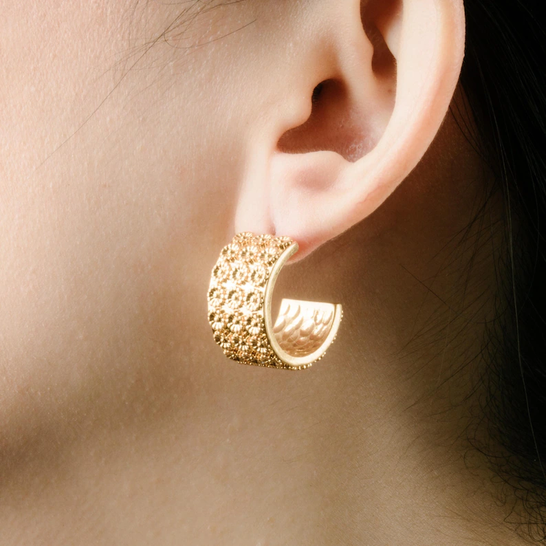 Gold Daisy Hoop Earrings – Wide Floral Design