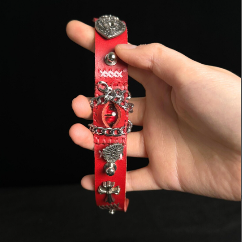 Material: Black leather + alloy + blood-red eyeball centerpiece