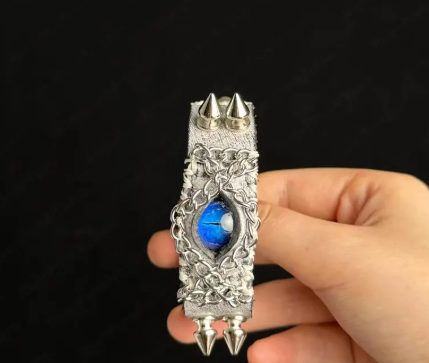 Embrace bold darkness with the Blue Demon Eye Leather Cuff, a handcrafted statement piece that fuses gothic, punk, and fantasy aesthetics. Featuring a striking blue demon eye centerpiece surrounded by metal spikes on a premium black leather band, this wristband exudes power, mystery, and fierce individuality.