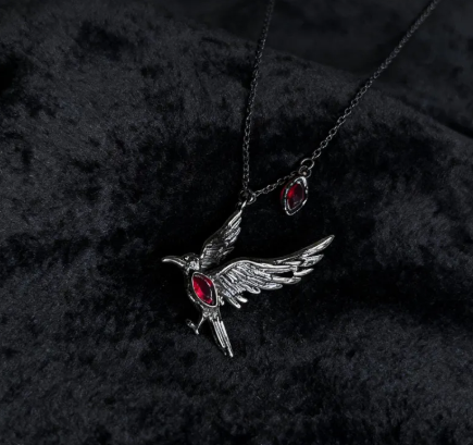 Crimson Crow Necklace – Gothic Raven Pendant Jewelry