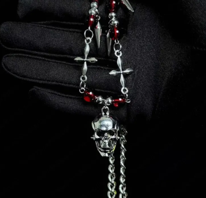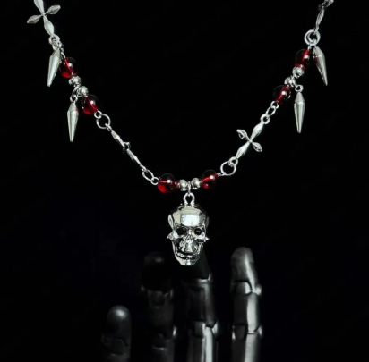 $79.90Embrace the dark allure of mortality with the Blood Bead Skull Cross Necklace, a handcrafted masterpiece designed for lovers of gothic, punk, and dark fantasy aesthetics. Featuring a detailed skull cross pendant adorned with blood-red beads and spiked accents, this necklace embodies rebellion, mystery, and a fearless embrace of life’s fleeting beauty.