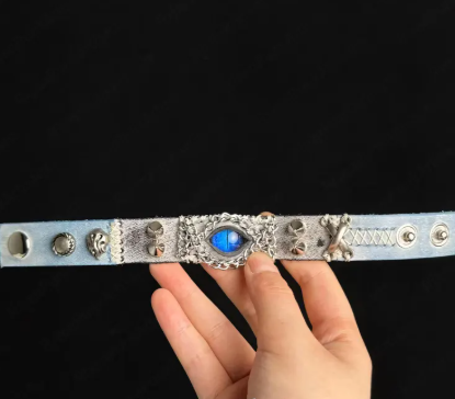 $109.90Make a bold statement with the Blue Eye Punk Leather Cuff, a handcrafted accessory that blends punk rebellion with gothic edge. Featuring a striking blue eye centerpiece, metal spikes, and chain detailing on a premium black leather band, this wristband exudes individuality, dark charm, and edgy style.