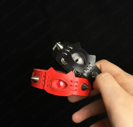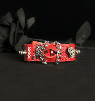 Blood Red Eyeball Leather Cuff – Handmade Gothic Punk Bracelet