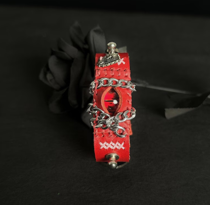 $69.90Make a bold and dark statement with the Blood Red Eyeball Leather Cuff, a handcrafted accessory that combines gothic aesthetics, punk attitude, and witchy grunge vibes. Featuring a vivid blood-red eyeball centerpiece, studded spikes, and decorative chains on a premium black leather band, this bracelet exudes mystery, rebellion, and edgy style.
