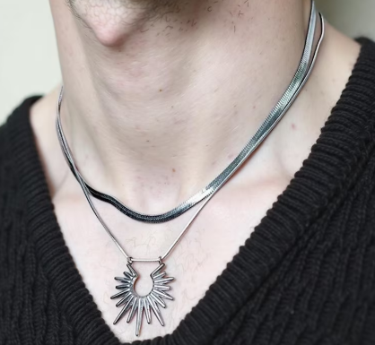 Designed for both men and women, the Solar Spike Necklace brings a striking edge to any outfit, from casual streetwear to gothic festival looks.