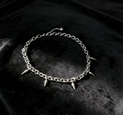 Make a bold statement with the Silver Spike Choker, a perfect blend of gothic edge and punk attitude. Featuring a chunky stainless steel chain adorned with sharp spikes, this necklace radiates confidence, rebellion, and dark elegance.