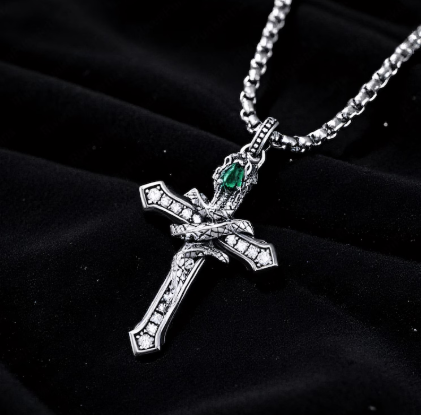 Step into the shadows with the Serpent Cross Amulet, a striking blend of gothic aesthetics and dark academia charm. Featuring a cross pendant entwined by a coiled serpent, this necklace symbolizes wisdom, mystery, and rebellious elegance.