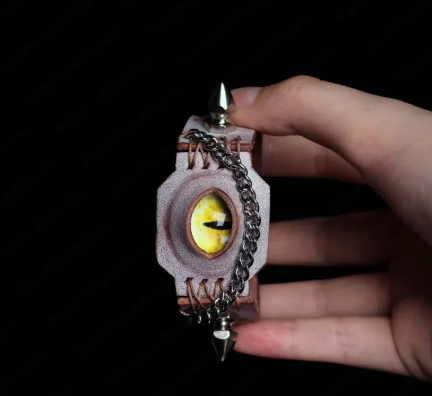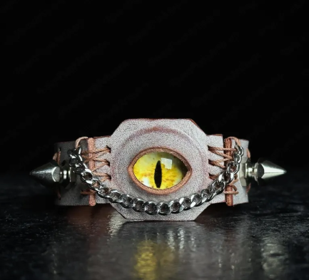 Command attention with the Reptile Eye Leather Cuff, a bold accessory that fuses punk rebellion with gothic mystique. Featuring a striking reptile-inspired eye centerpiece set on a premium black leather cuff with chain and stud accents, this bracelet exudes power, individuality, and edgy charm.