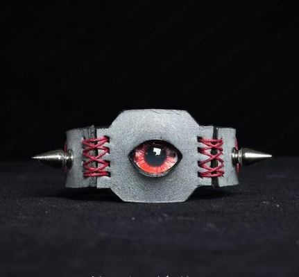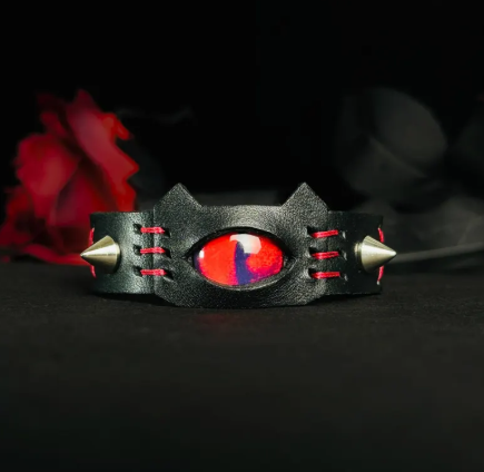 Red Demon Eye Cat Ear Leather Cuff – Handmade Gothic Punk Bracelet